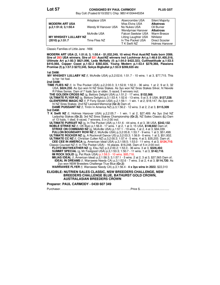 2021 COLT OUT OF MY WHISKEY LULLABY NZ