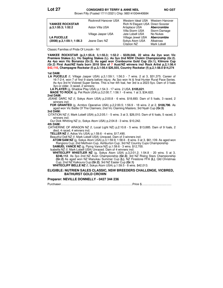 2021 FILLY OUT OF LA PUCELLE