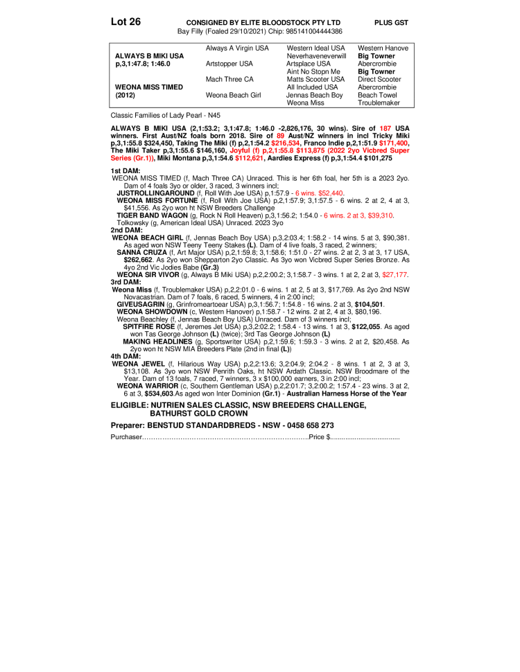 ELITE BLOODSTOCK PTY LTD - 6141 252 204