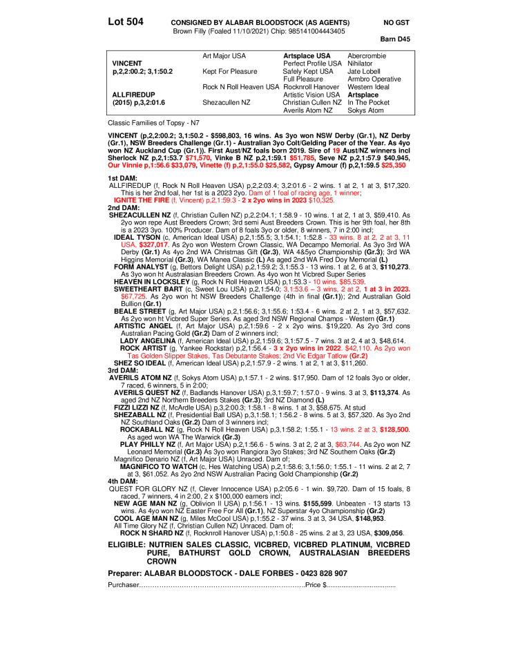 Alabar Bloodstock (As Agents) - 0423812652