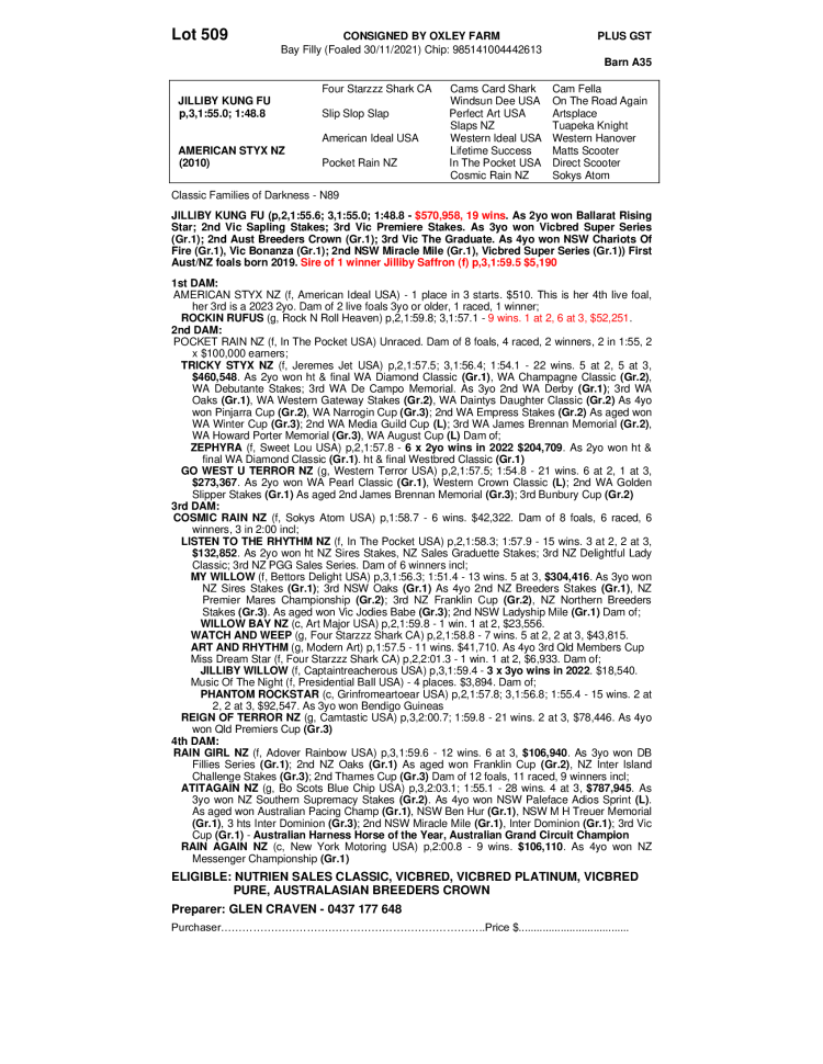 2021 FILLY OUT OF AMERICAN STYX NZ
