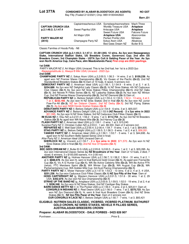 2021 FILLY OUT OF PARTY MAJOR NZ