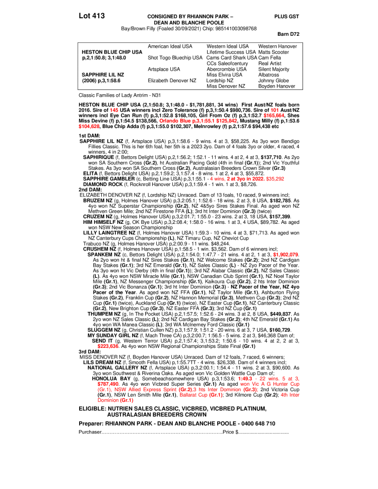 2021 FILLY OUT OF SAPPHIRE LIL nz