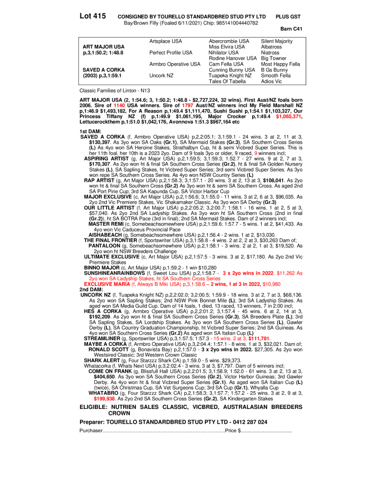Tourello Standardbred Stud Pty Ltd - 0412287024