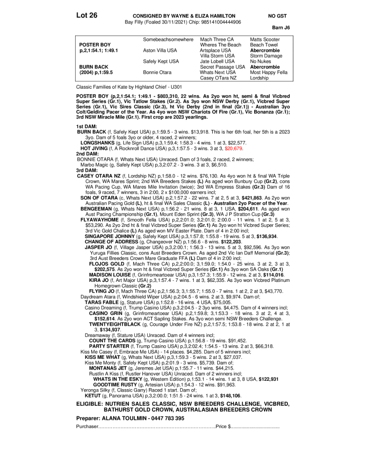 2021 filly out of BURN BACK