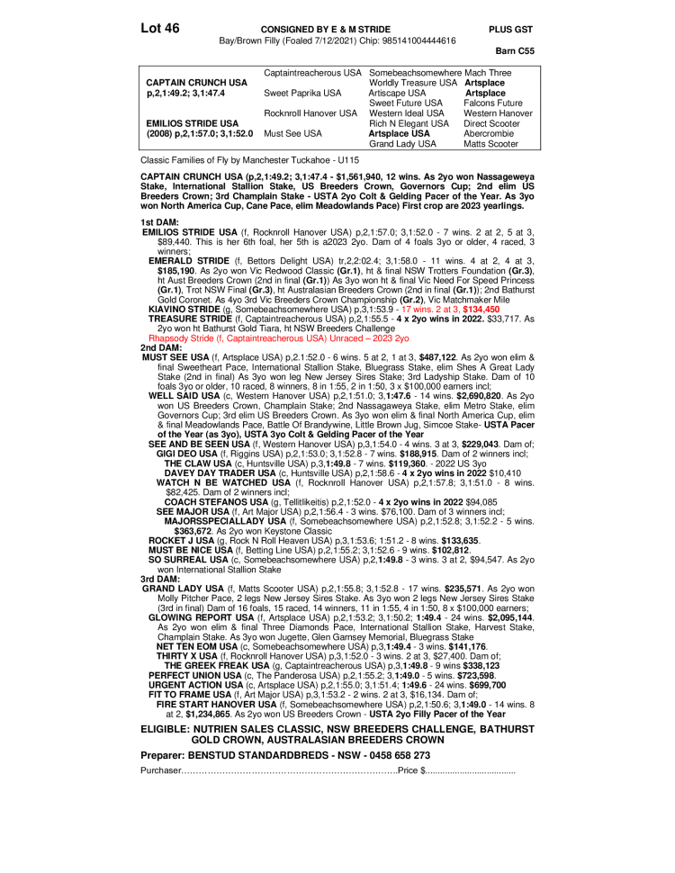 2021 FILLY OUT OF EMILIOS STRIDE USA