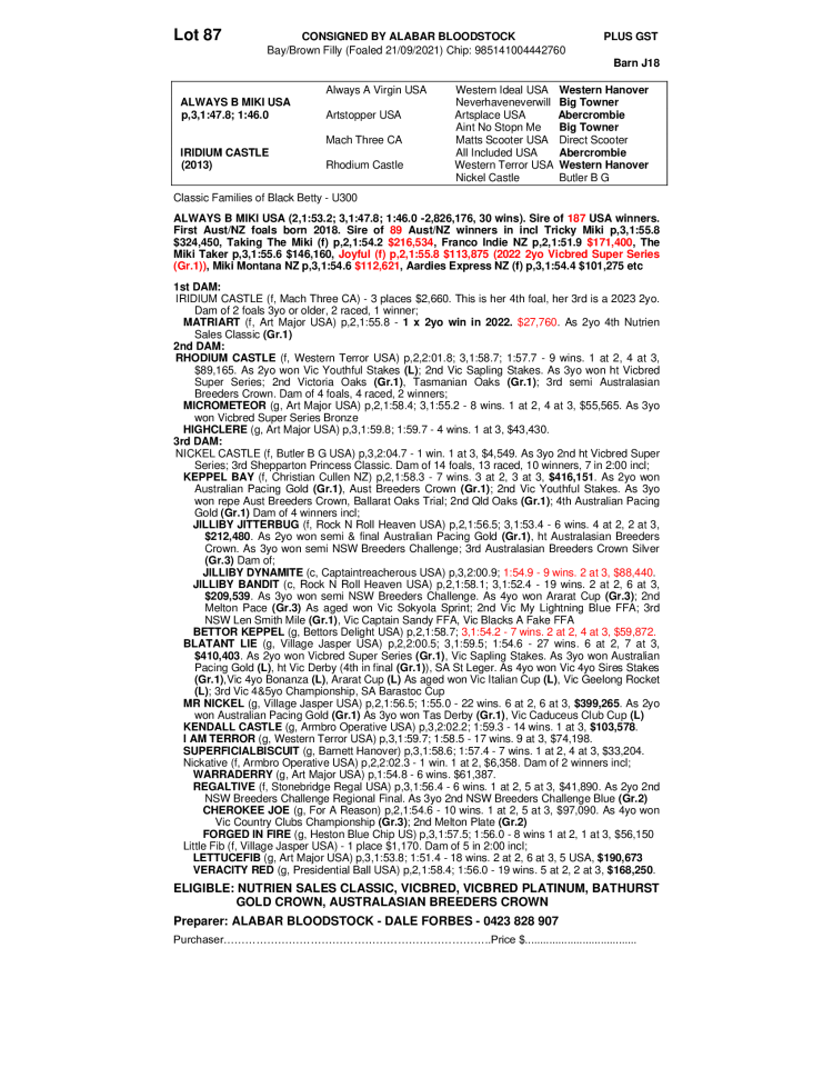 ALABAR BLOODSTOCK - 0423812652