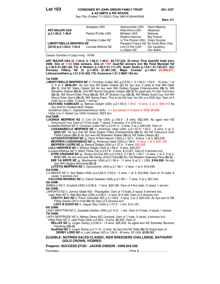 2021 FILLY OUT OF LIBERTYBELLE MIDFREW NZ
