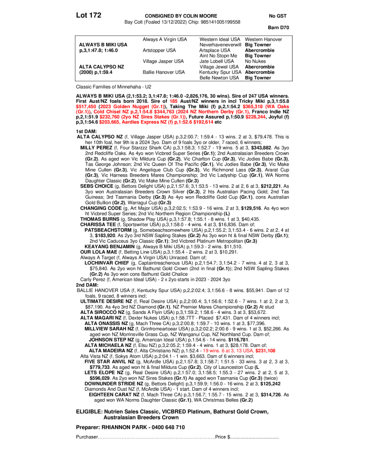 MELBOURNE 2024 - NUTRIEN STANDARDBRED YEARLING SALE