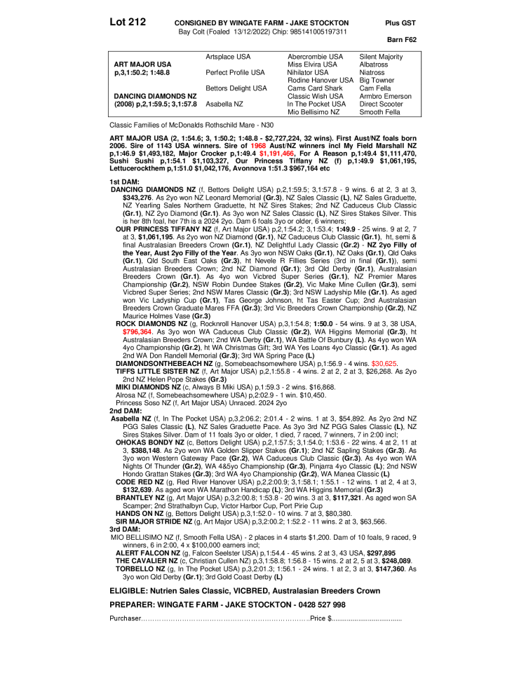 2022 COLT OUT OF DANCING DIAMONDS NZ