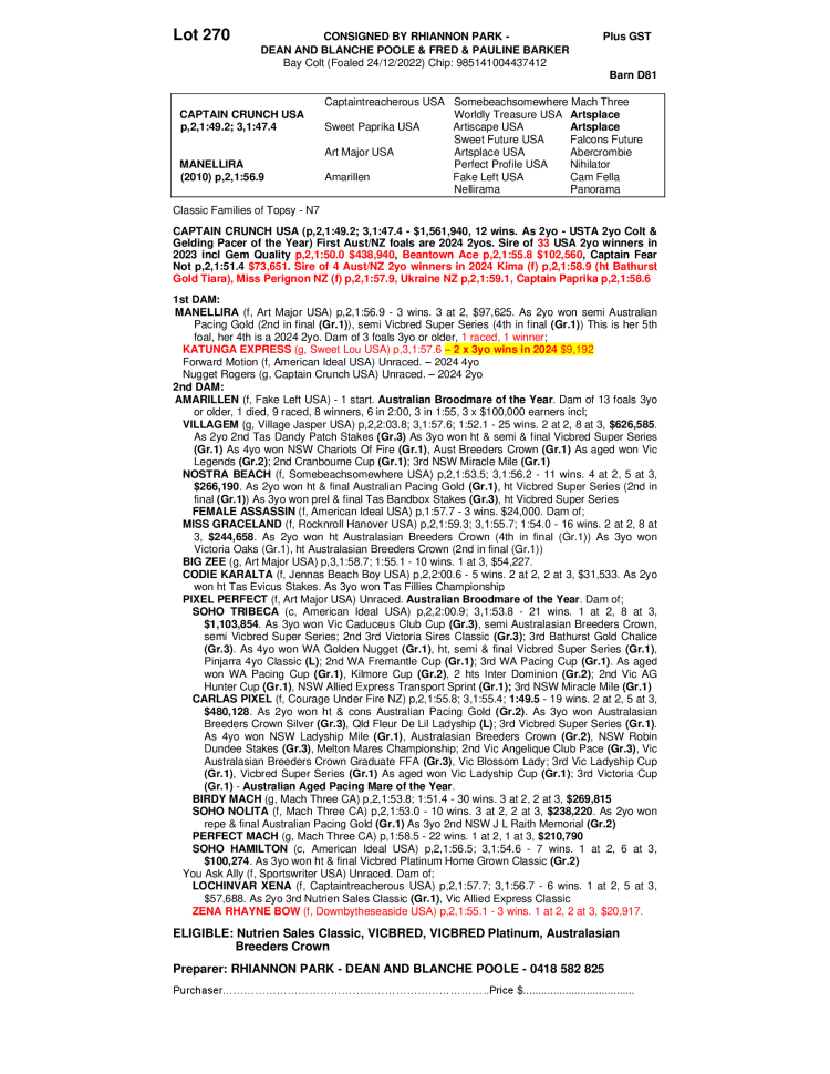 MELBOURNE 2024 - NUTRIEN STANDARDBRED YEARLING SALE
