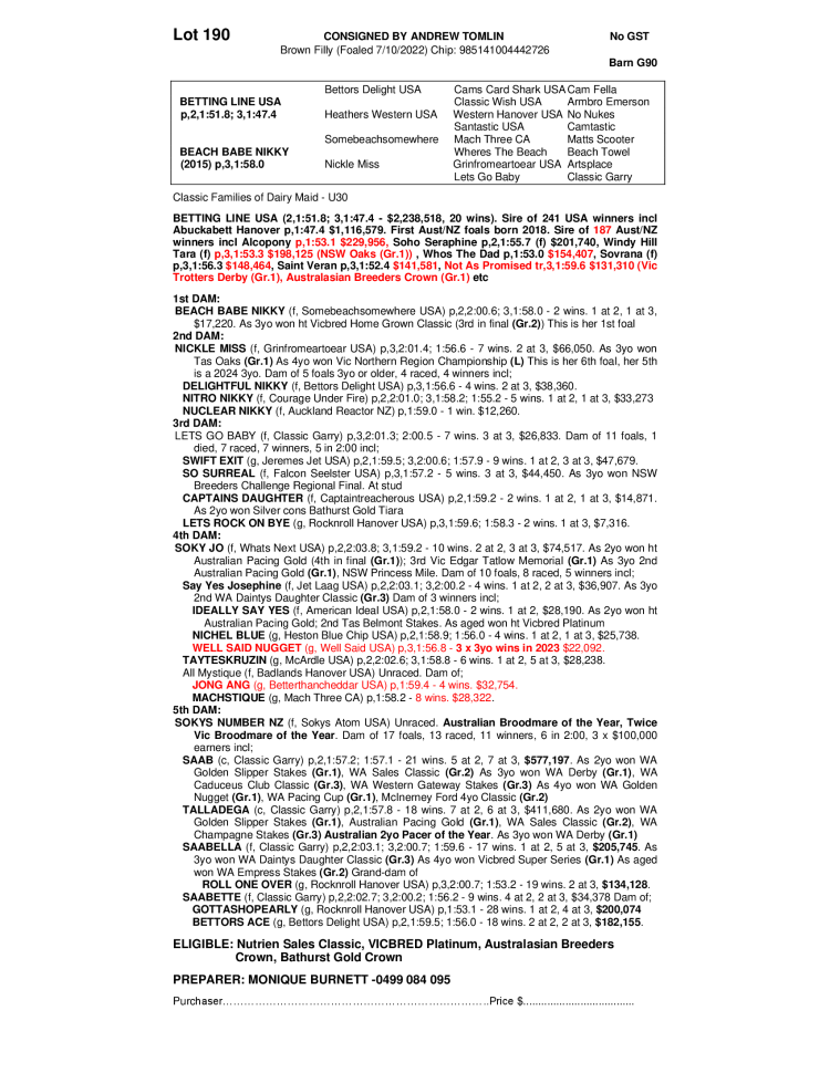 MELBOURNE 2024 - NUTRIEN STANDARDBRED YEARLING SALE