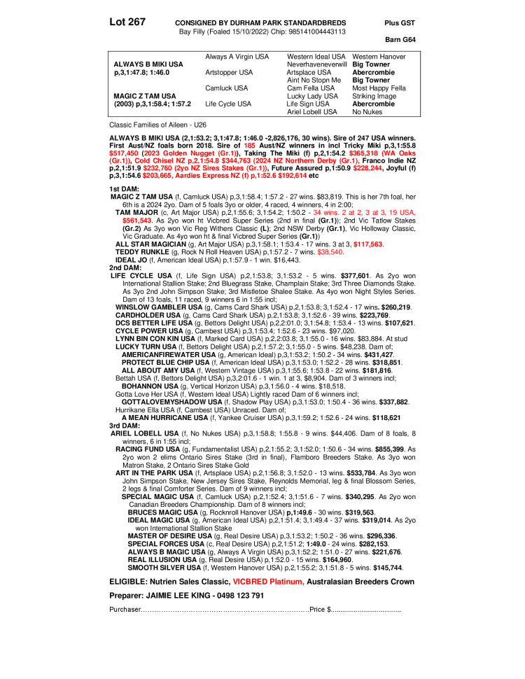 MELBOURNE 2024 - NUTRIEN STANDARDBRED YEARLING SALE