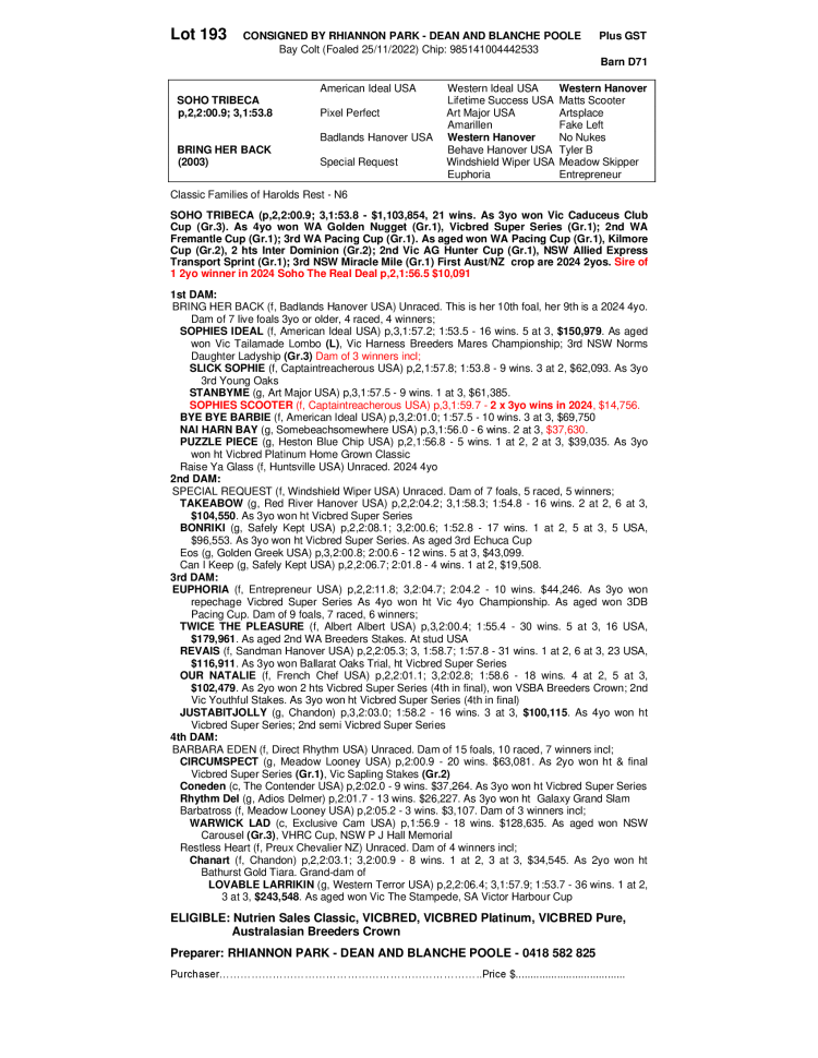 MELBOURNE 2024 - NUTRIEN STANDARDBRED YEARLING SALE