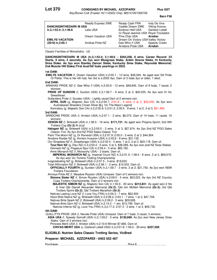 MELBOURNE 2025 - NUTRIEN STANDARDBRED YEARLING SALES