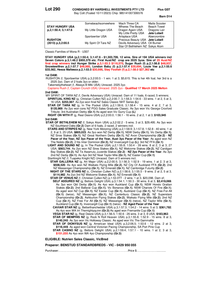 MELBOURNE 2025 - NUTRIEN STANDARDBRED YEARLING SALES