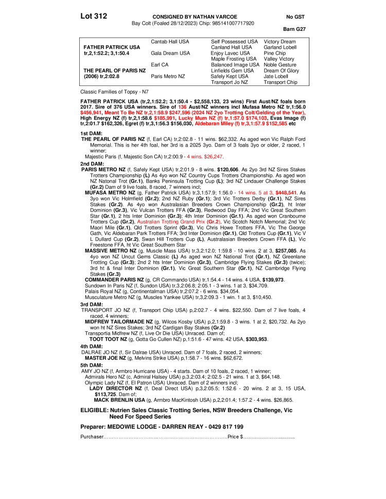 MELBOURNE 2025 - NUTRIEN STANDARDBRED YEARLING SALES
