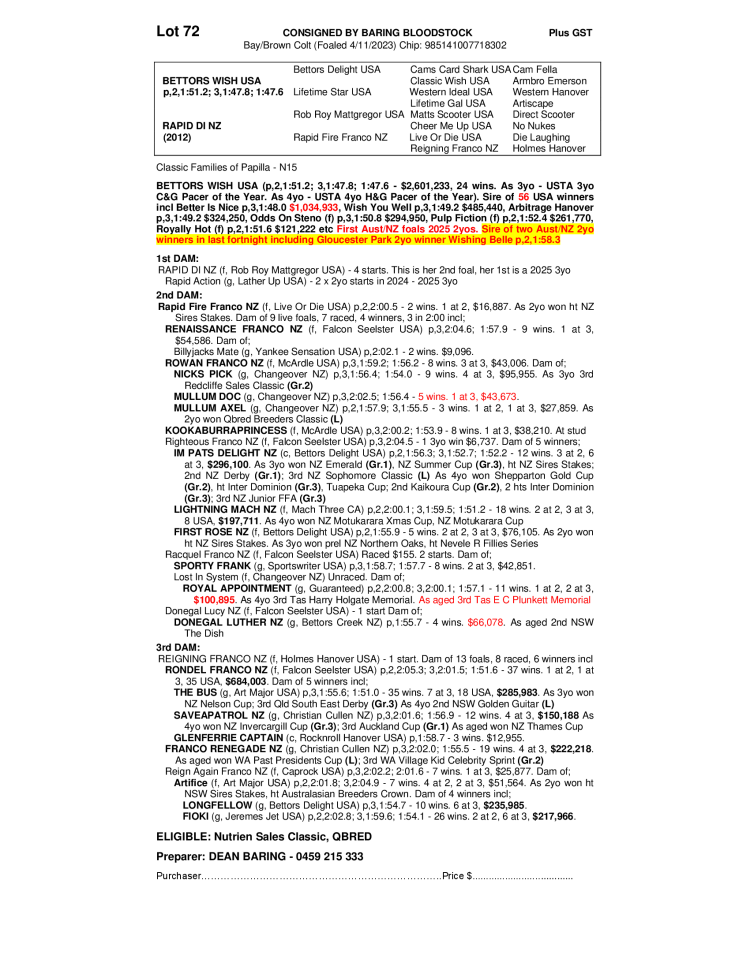 SUNSHINE STARS 2025 - NUTRIEN YEARLING SALES