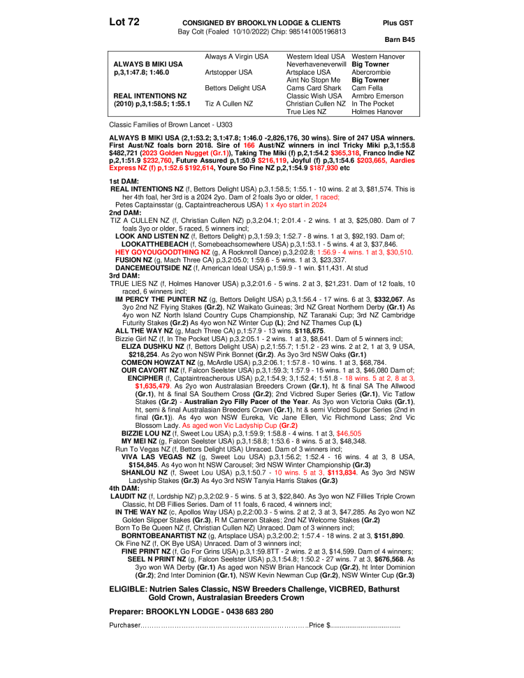 2022 COLT OUT OF REAL INTENTIONS NZ