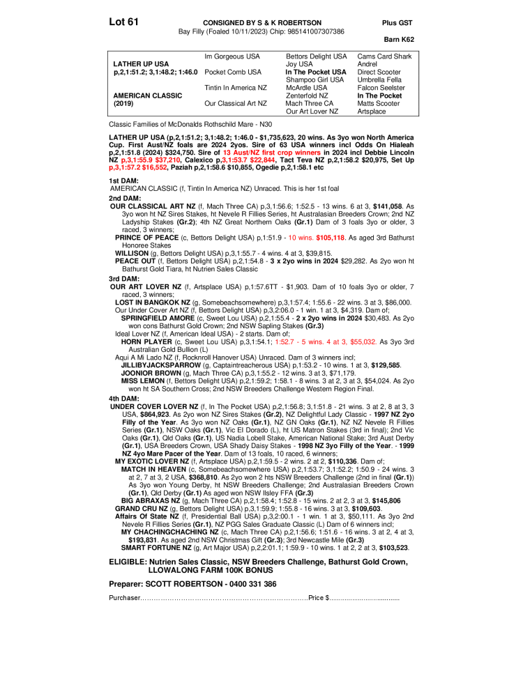 Lot 61 · SYDNEY, NSW 1515