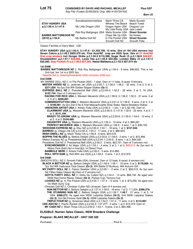 BARBIE MATTGREGOR NZ 2023 FILLY