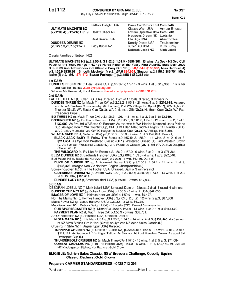 DUNDEES DESIRE NZ 2023 FILLY