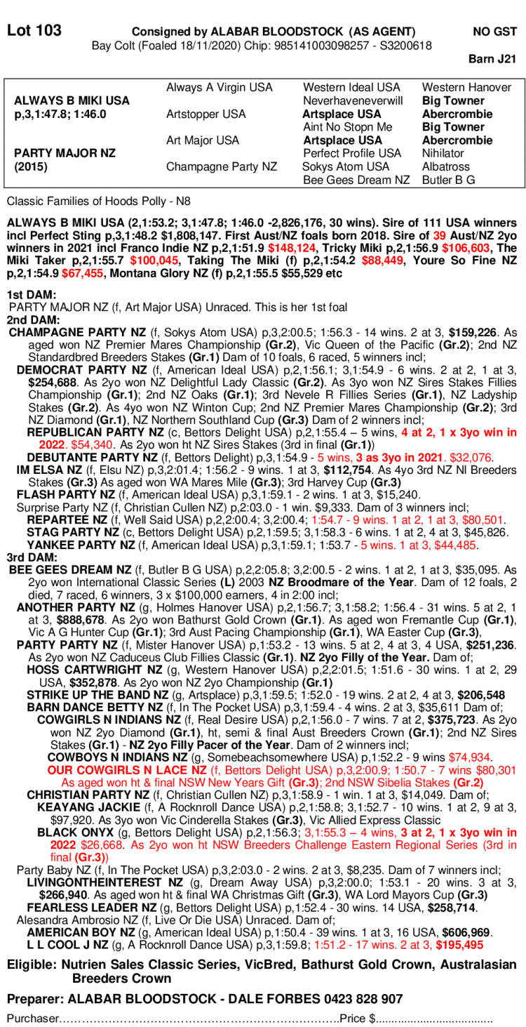 ALABAR BLOODSTOCK AS AGENTS - 0423812652