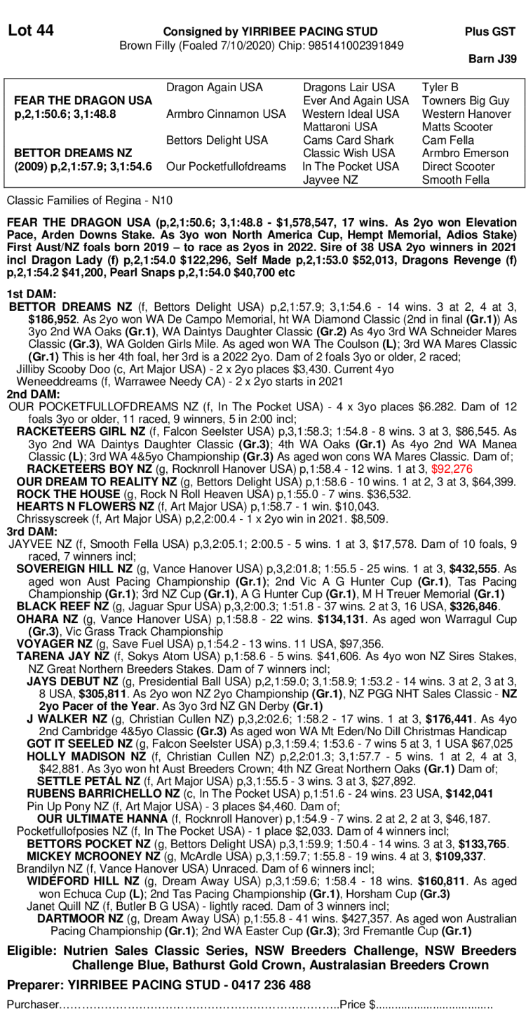 2020 FILLY OUT OF BETTOR DREAMS NZ