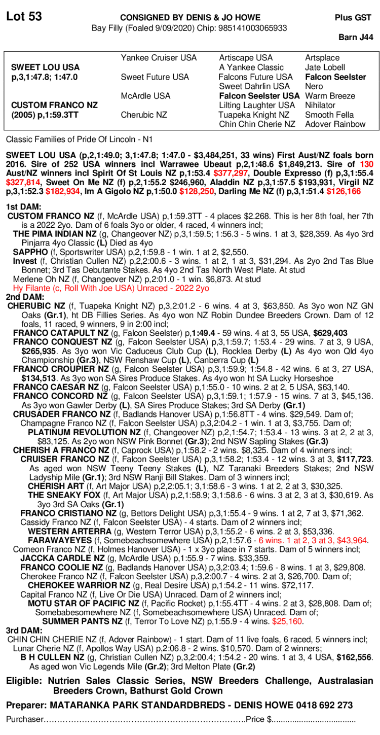 2020 FILLY OUT OF CUSTOM FRANCO NZ