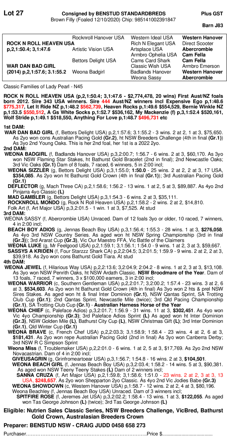 SYDNEY NUTRIEN EQUINE STANDARDBRED YEARLING SALE