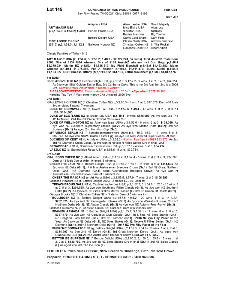 RISE ABOVE THIS NZ 2024 FILLY