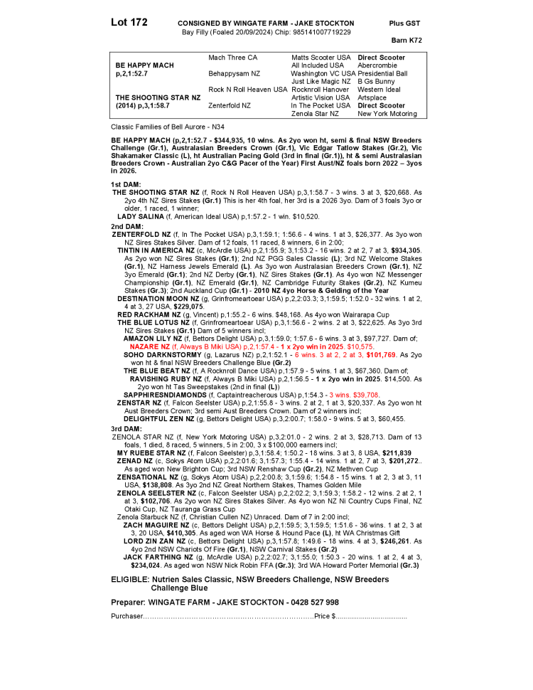 THE SHOOTING STAR NZ 2024 FILLY