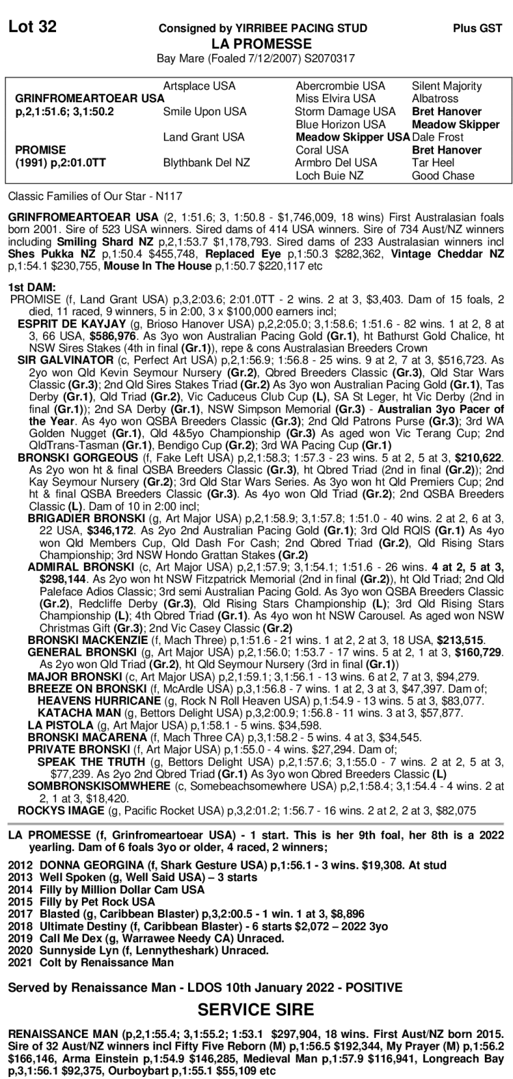 YIRRIBEE STUD DISPERSAL STANDARDBRED SALE