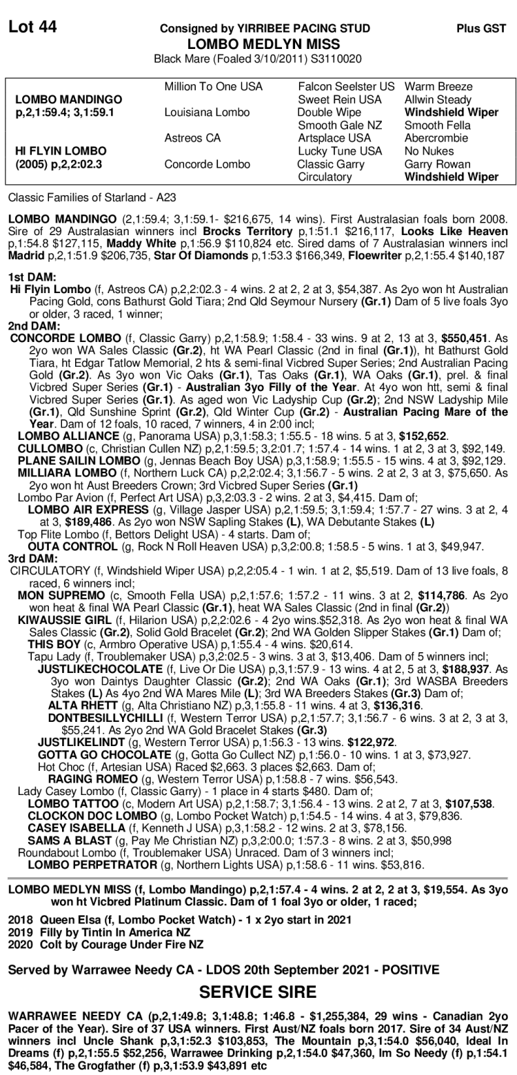 YIRRIBEE STUD DISPERSAL STANDARDBRED SALE