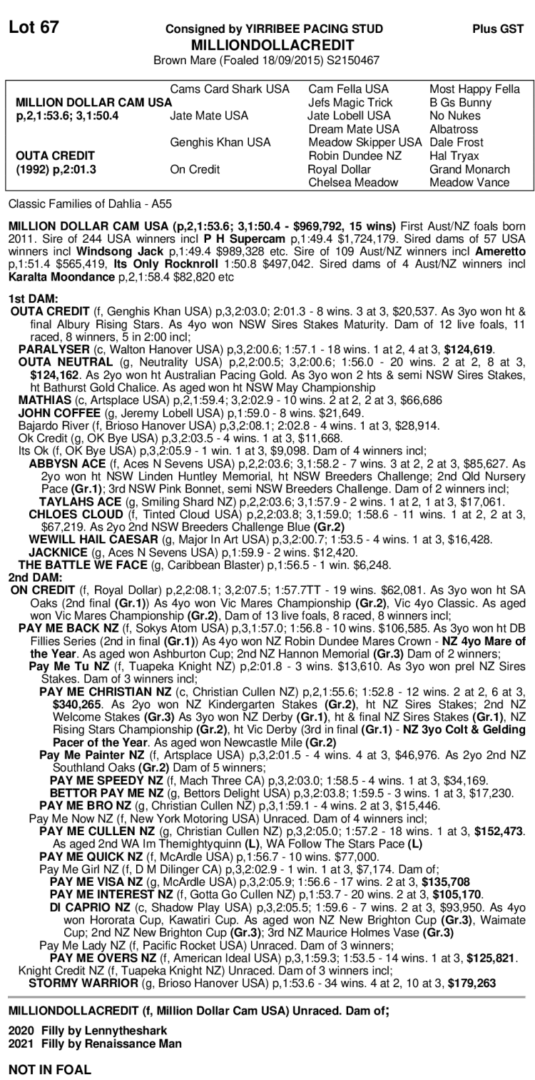YIRRIBEE STUD DISPERSAL STANDARDBRED SALE