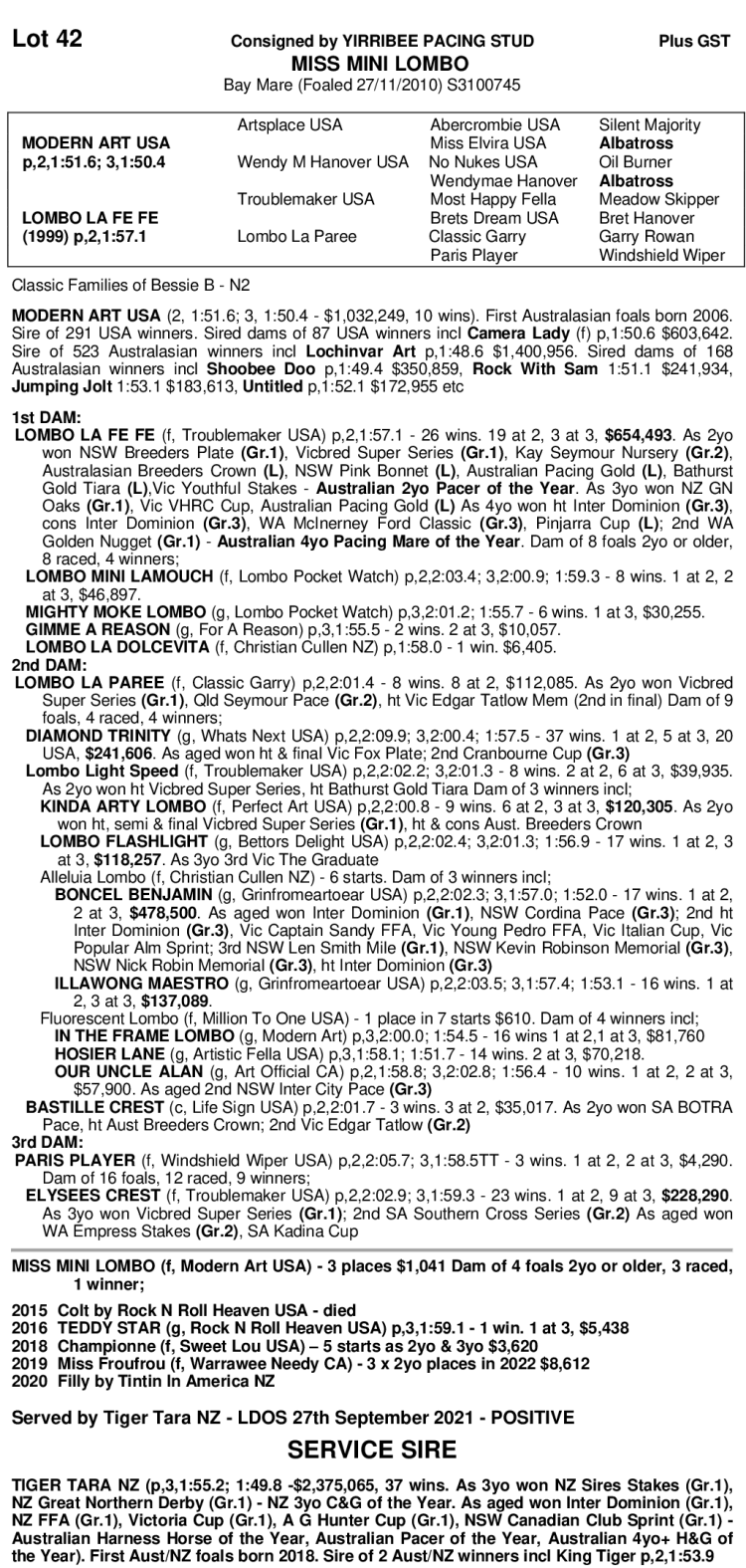 YIRRIBEE STUD DISPERSAL STANDARDBRED SALE