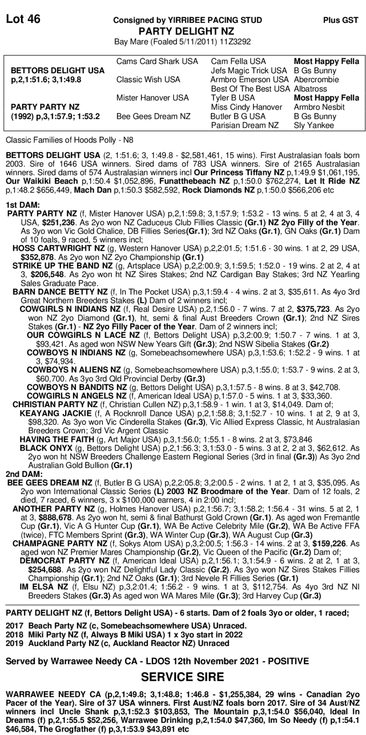 YIRRIBEE STUD DISPERSAL STANDARDBRED SALE