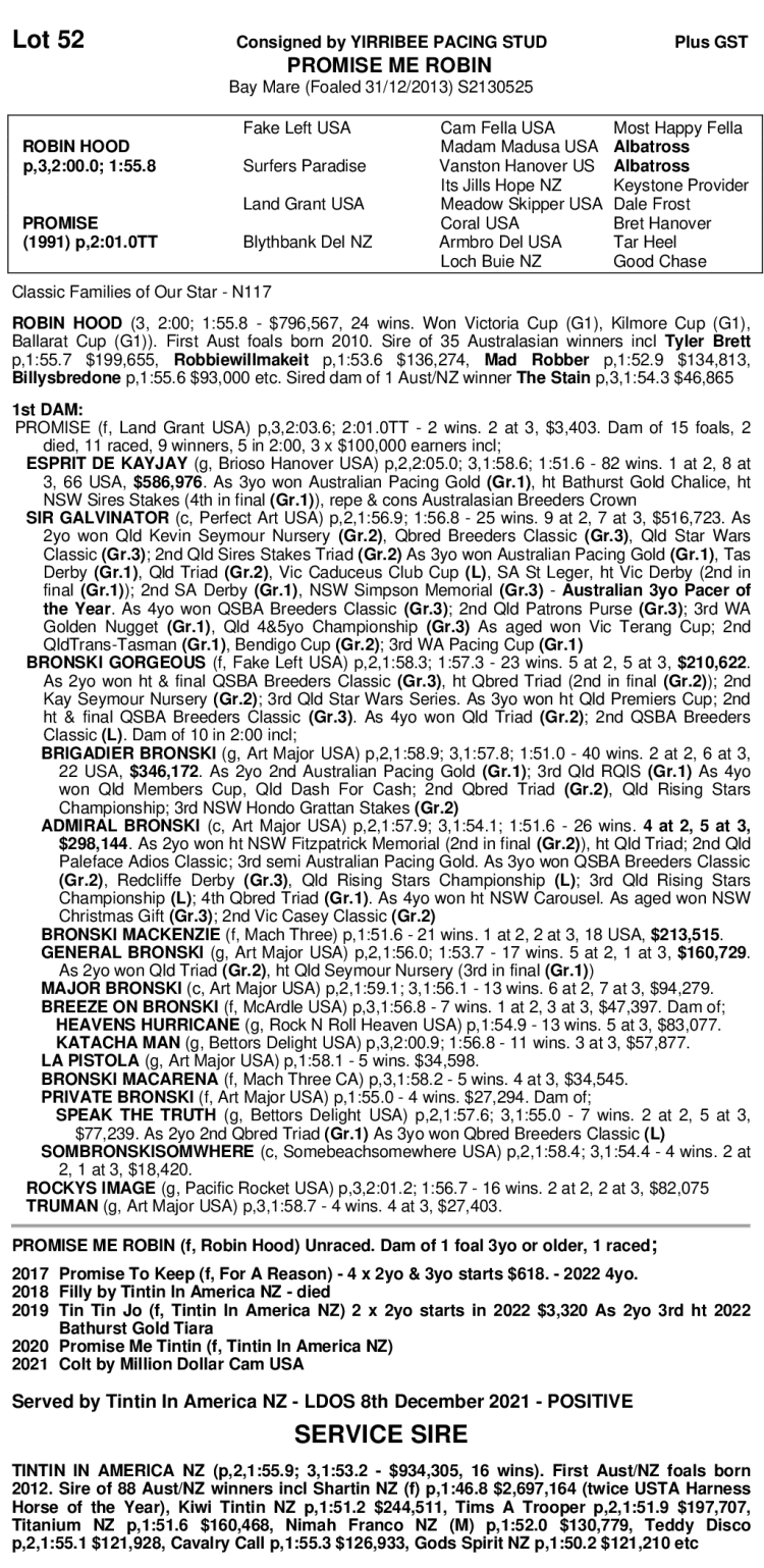YIRRIBEE STUD DISPERSAL STANDARDBRED SALE