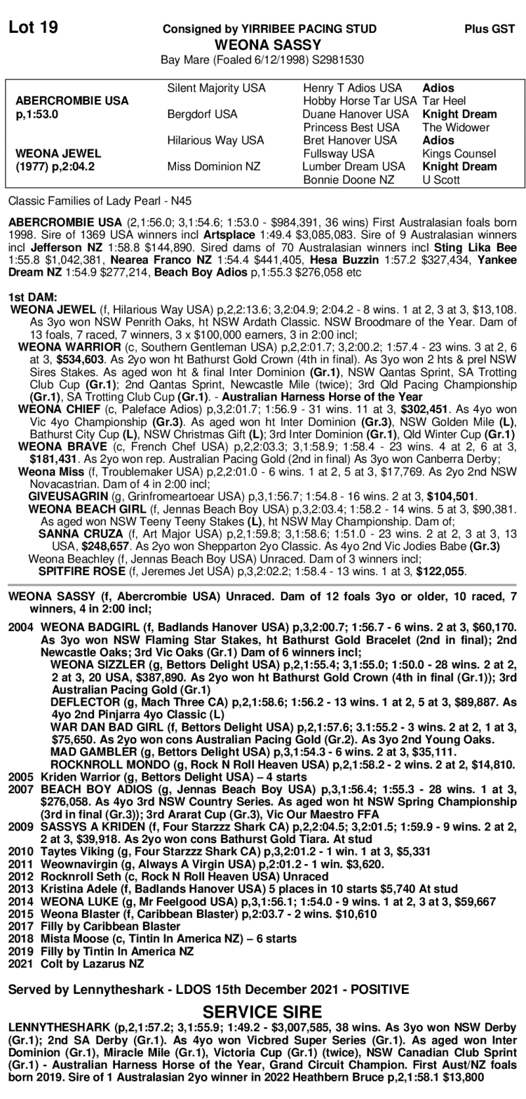 YIRRIBEE STUD DISPERSAL STANDARDBRED SALE
