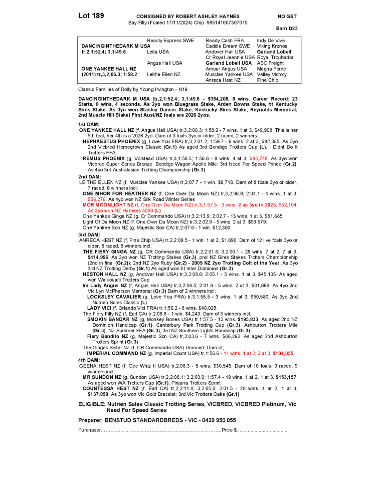 ONE YANKEE HALL NZ 2024 FILLY