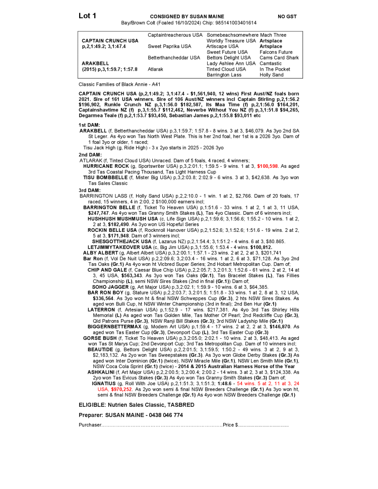 NUTRIEN EQUINE TASMANIAN STANDARDBRED YEARLING SALE