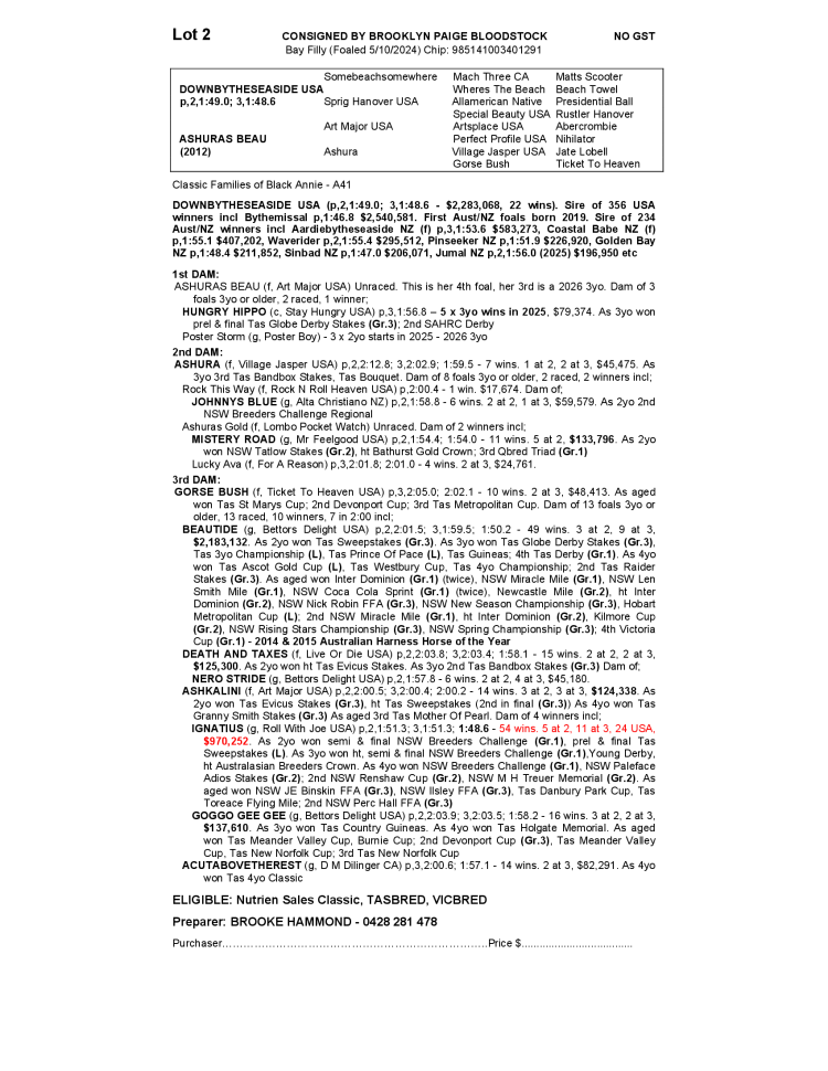 NUTRIEN EQUINE TASMANIAN STANDARDBRED YEARLING SALE