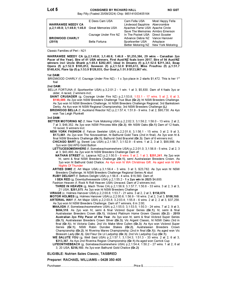 NUTRIEN EQUINE TASMANIAN STANDARDBRED YEARLING SALE