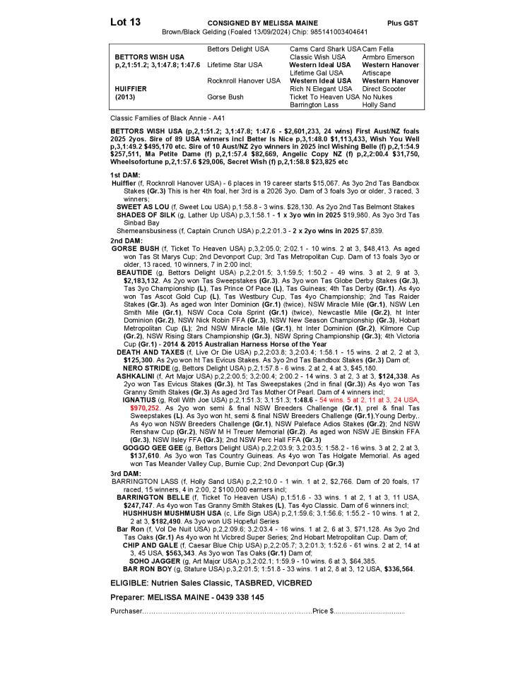 NUTRIEN EQUINE TASMANIAN STANDARDBRED YEARLING SALE