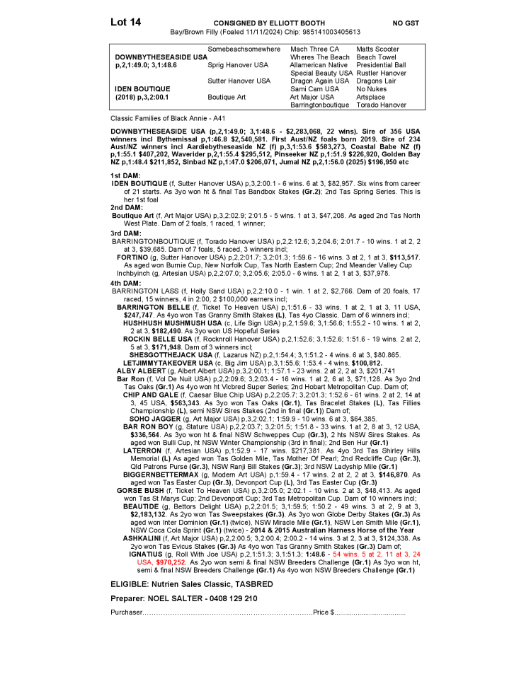 NUTRIEN EQUINE TASMANIAN STANDARDBRED YEARLING SALE