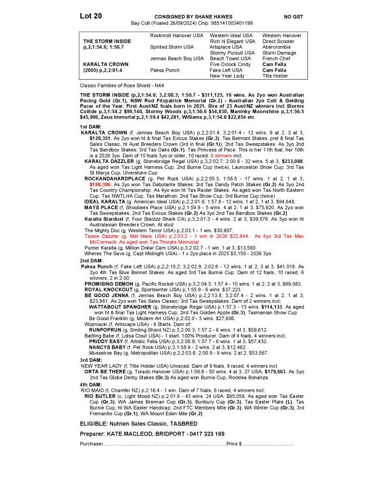 NUTRIEN EQUINE TASMANIAN STANDARDBRED YEARLING SALE