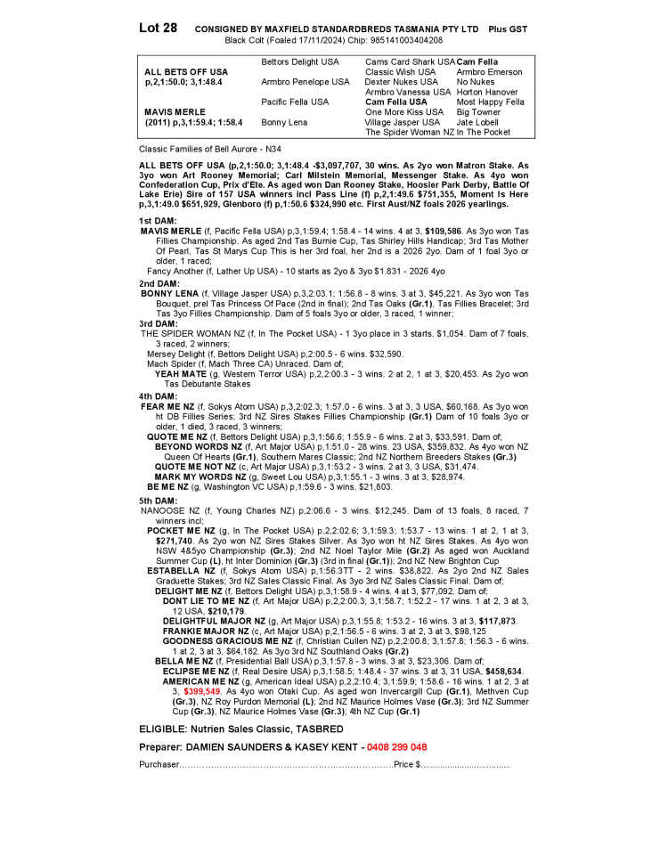 NUTRIEN EQUINE TASMANIAN STANDARDBRED YEARLING SALE