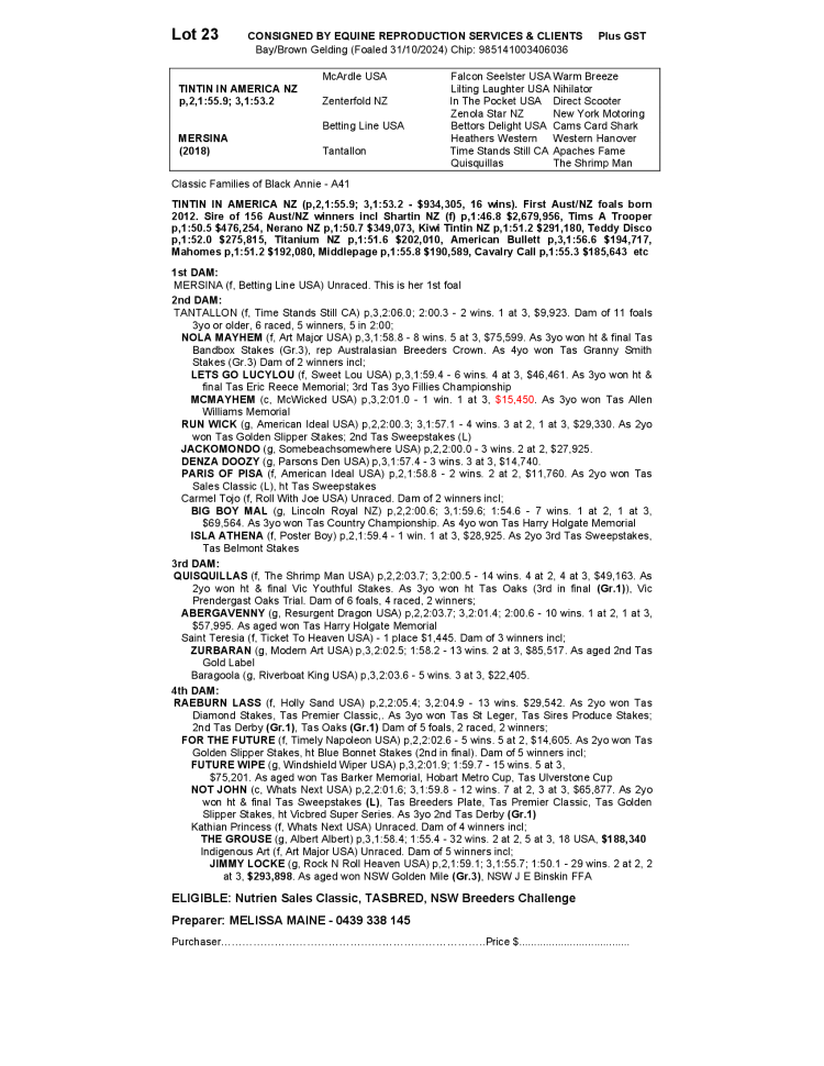 NUTRIEN EQUINE TASMANIAN STANDARDBRED YEARLING SALE