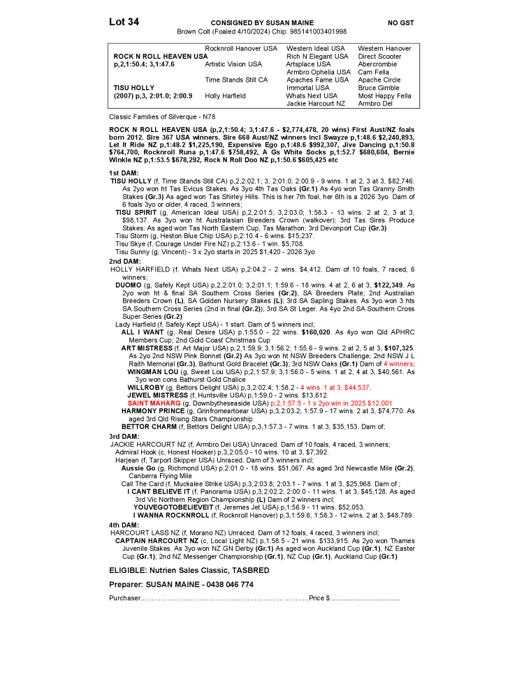 NUTRIEN EQUINE TASMANIAN STANDARDBRED YEARLING SALE