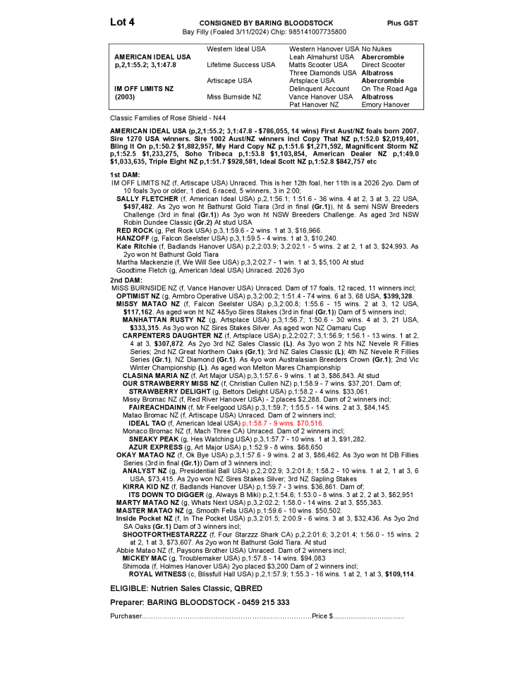 IM OFF LIMITS NZ 2024 FILLY